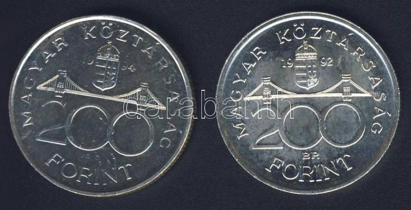 1992-94. 200Ft Ag "MNB" (1x) + "Deák" (1x) T:BU,2 https://www.darabanth.com/de/114-Fernauktion/114.0/Numismatik/~424/1992-94-200Ft-Ag-MNB-1x-plus-Deak-1x-TBU-2~II295756