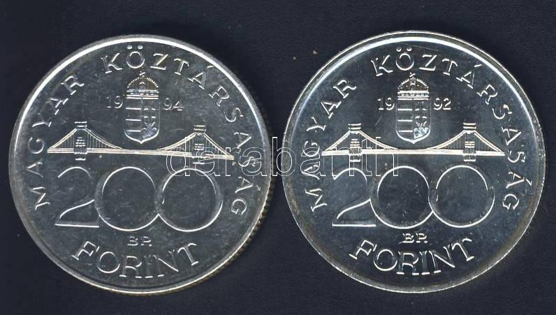 1992-94. 200Ft Ag "MNB" (1x) + "Deák" (1x) T:BU,2 https://www.darabanth.com/de/114-Fernauktion/114.0/Numismatik/~424/1992-94-200Ft-Ag-MNB-1x-plus-Deak-1x-TBU-2~II295768
