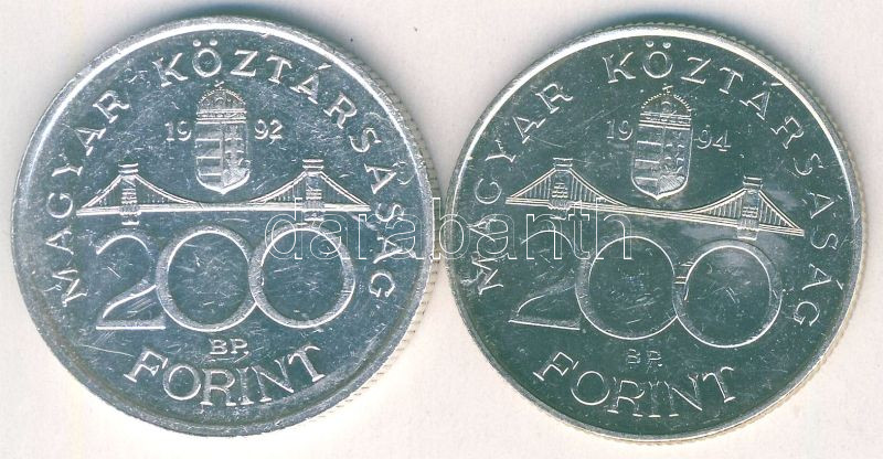 1992-94. 200Ft Ag "MNB" (1x) + "Deák" (1x) T:BU,2 https://www.darabanth.com/de/114-Fernauktion/114.0/Numismatik/~424/1992-94-200Ft-Ag-MNB-1x-plus-Deak-1x-TBU-2~II296426