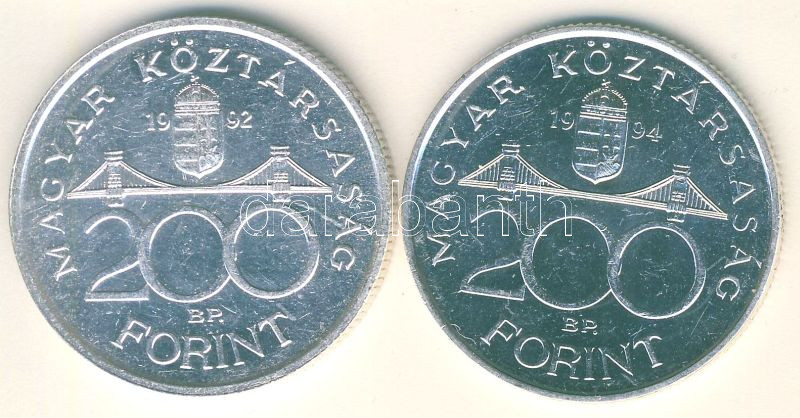 1992-94. 200Ft Ag "MNB" (1x) + "Deák" (1x) T:BU,2 https://www.darabanth.com/de/114-Fernauktion/114.0/Numismatik/~424/1992-94-200Ft-Ag-MNB-1x-plus-Deak-1x-TBU-2~II296428