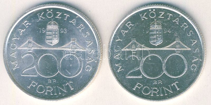 1993-94. 200Ft Ag "MNB" (1x) + "Deák" (1x) T:BU,2 https://www.darabanth.com/de/114-Fernauktion/114.0/Numismatik/~424/1993-94-200Ft-Ag-MNB-1x-plus-Deak-1x-TBU-2~II296429