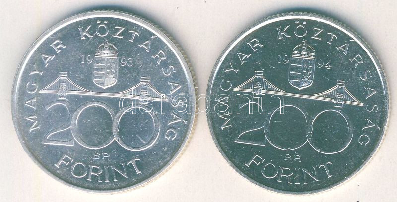 1993-94. 200Ft Ag "MNB" (1x) + "Deák" (1x) T:BU,2 https://www.darabanth.com/de/114-Fernauktion/114.0/Numismatik/~424/1993-94-200Ft-Ag-MNB-1x-plus-Deak-1x-TBU-2~II296439