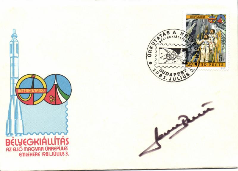 1981 Farkas Bertalan aláírása Szovjet-magyar közös űrrepülés borítékon https://www.darabanth.com/de/115-Fernauktion/115.0/Andere-Sammelgebiete/~50073/1981-Farkas-Bertalan-alairasa-Szovjet-magyar-kozos-urrepules-boritekon~II300250