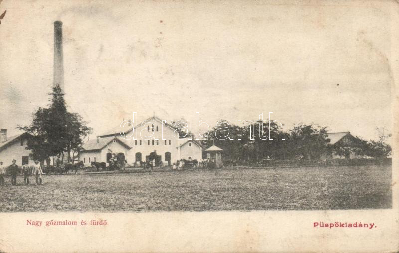 Püspökladány gőzmalom és fürdő (Rb) https://www.darabanth.com/de/115-Fernauktion/115.0/Ansichtskarten/~50076/Puspokladany-gozmalom-es-furdo-Rb~II280281
