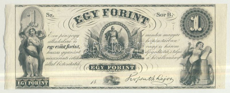 Emigrációs "Kossuth-bankó" 18.. 1Ft "Sor B." T:I https://www.darabanth.com/de/115-Fernauktion/115.0/Numismatik/~50176/Emigracios-Kossuth-banko-18-1Ft-Sor-B-TI~II278766