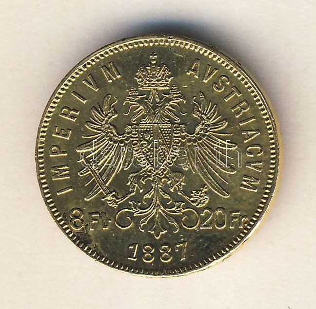 Ausztria 1887. 8Fl/20Fr Au 6,4516g T:2 https://www.darabanth.com/de/115-Fernauktion/115.0/Numismatik/~50185/Ausztria-1887-8Fl20Fr-Au-6-4516g-T2~II301139