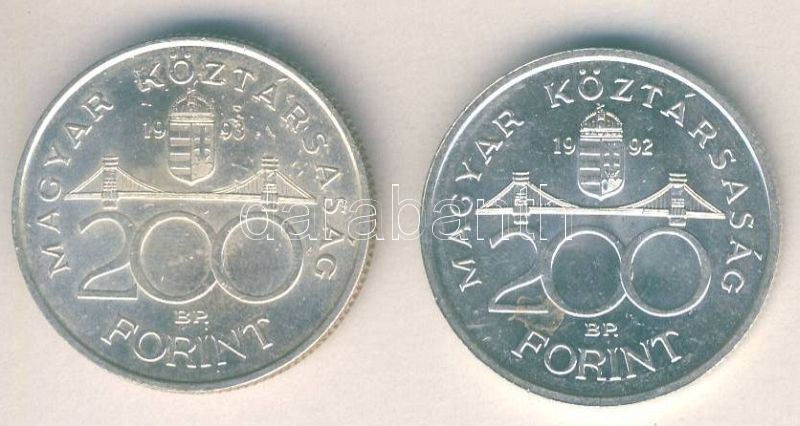 1992-93. 200Ft Ag "MNB" (2x) T:BU,2 https://www.darabanth.com/de/115-Fernauktion/115.0/Numismatik/~50188/1992-93-200Ft-Ag-MNB-2x-TBU-2~II299017