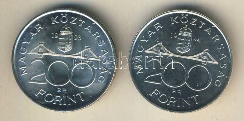 Beschreibung: 1993-94. 200Ft Ag "MNB" (1x) + "Deák" (1x) T:BU,2