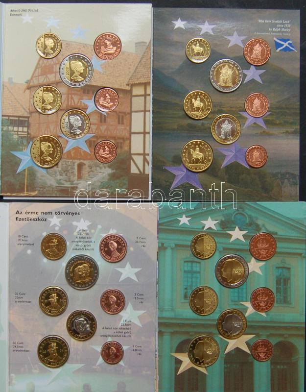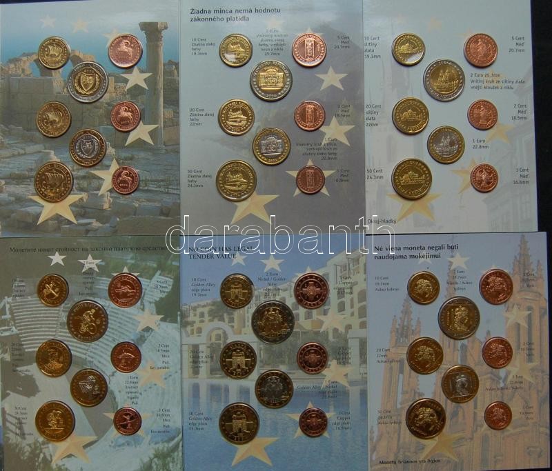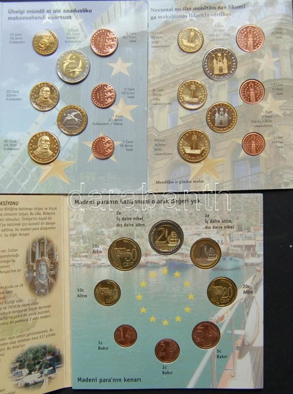 Próbaszett gyűjtemény, benne 13 ország (Dánia, Nagy-Britannia, Svédország, Csehország, Ciprus, Lettország, Észtország, Magyarország, Málta, Bulgária, Litvánia, Szlovákia, Törökország" Euro próbaveretei 1c-2€ 8klf db, szettekben T:1,BU
