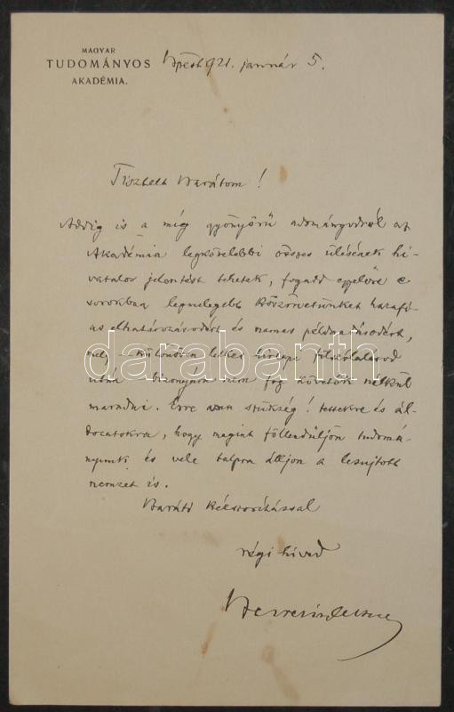 Berzeviczy Albert az MTA elnőkének kézzel írt és aláírt levele az Akad... https://www.darabanth.com/de/116-Fernauktion/116.0/Andere-Sammelgebiete/~260/Berzeviczy-Albert-az-MTA-elnokenek-kezzel-irt-es-alairt-levele-az-Akademia-levelpapirjan~II306402