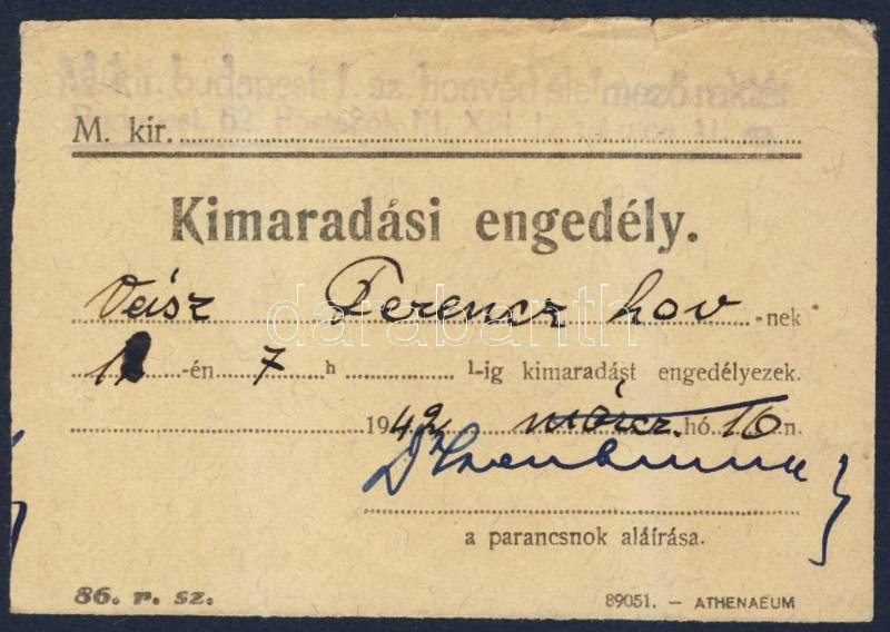 1942 Kimaradási engedély munkaszolgálatos részére https://www.darabanth.com/de/116-Fernauktion/116.0/Andere-Sammelgebiete/~322/1942-Kimaradasi-engedely-munkaszolgalatos-reszere~II306676