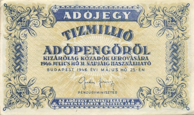 1946. 10.000.000AP főtípus T:II+ https://www.darabanth.com/de/116-Fernauktion/116.0/Numismatik/~332/1946-10000000AP-fotipus-TIIplus~II306526