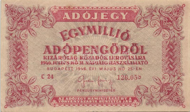 1946. 1.000.000AP 6 folyószámmal, benne utolsó szám "8" felül kitörve,... https://www.darabanth.com/de/116-Fernauktion/116.0/Numismatik/~332/1946-1000000AP-6-folyoszammal-benne-utolso-szam-8-felul-kitorve-erosen-felcsuszva-T~II306537