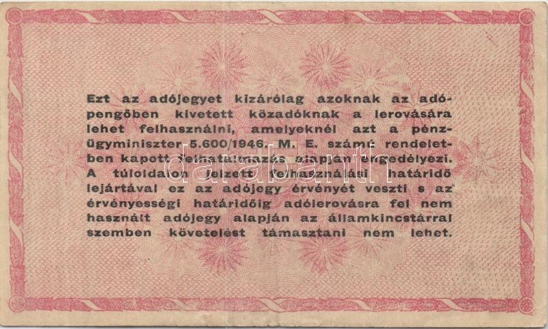 Beschreibung: 1946. 1.000.000AP 6 folyószámmal, benne utolsó szám "8" felül kitörve, erősen felcsúszva! T:II