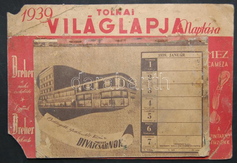 1939 évi Tolnai Világlapja asztali naptár helyenként sérülésekkel https://www.darabanth.com/de/117-Fernauktion/117.0/Andere-Sammelgebiete/~30127/1939-evi-Tolnai-Vilaglapja-asztali-naptar-helyenkent-serulesekkel~II309694