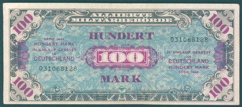 Beschreibung: Német 3. Birodalom / szövetséges megszállás alatt 1944. 100M USA-nyomat kilencjegyű sorszámmal T:II