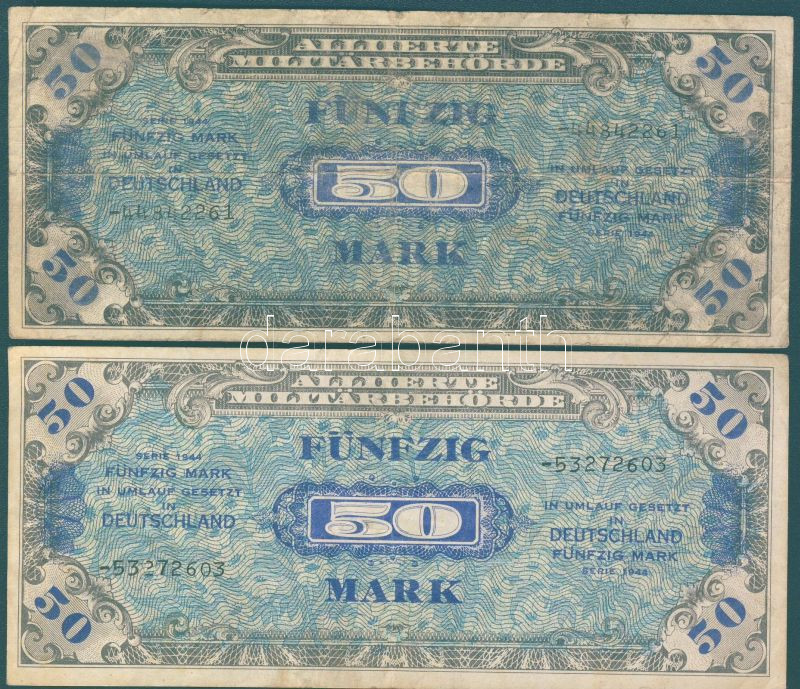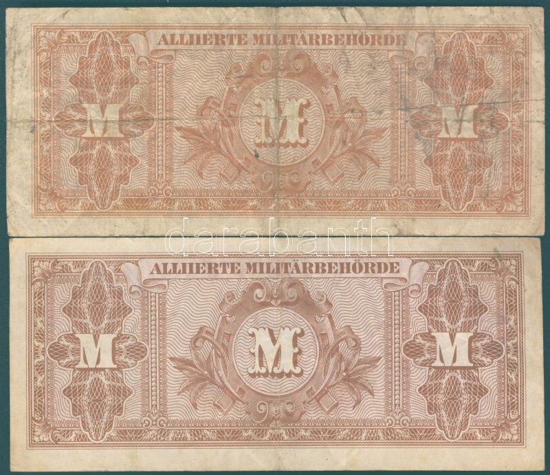 Beschreibung: Német 3. Birodalom / szövetséges megszállás alatt 1944. 20M (2x)USA-nyomat kilencjegyű sorszámmal T:III