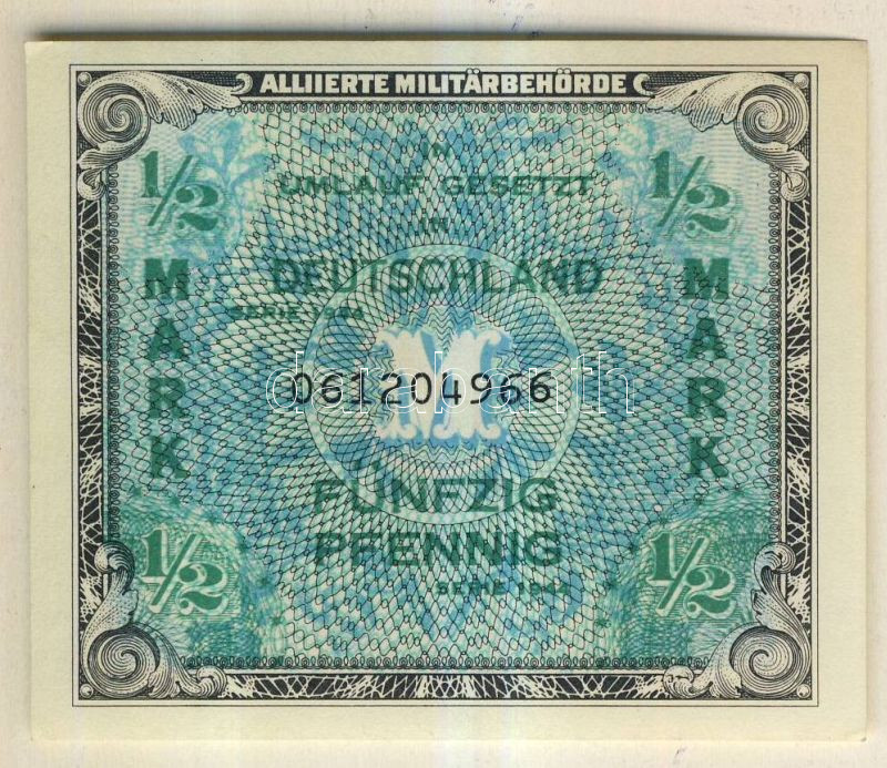 Németország szövetségi megszállás alatt 1944. 1/2M USA-nyomat kilencje... https://www.darabanth.com/de/117-Fernauktion/117.0/Numismatik/~30133/Nemetorszag-szovetsegi-megszallas-alatt-1944-12M-USA-nyomat-kilencjegyu-sorszammal-TI~II313008