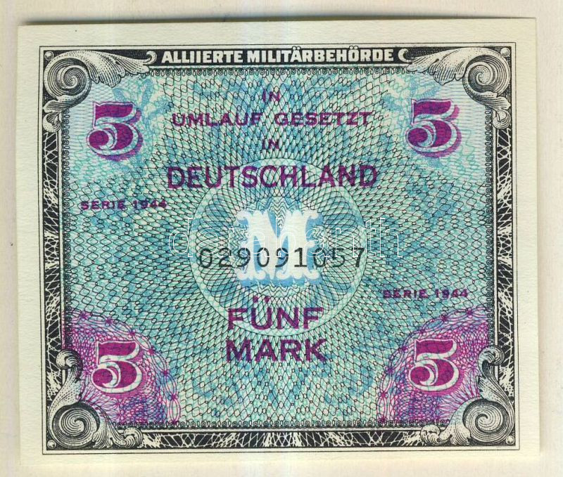 Beschreibung: Németország szövetségi megszállás alatt 1944. 5M USA-nyomat kilencjegyű sorszámmal T:I