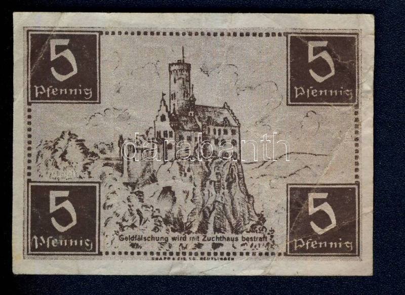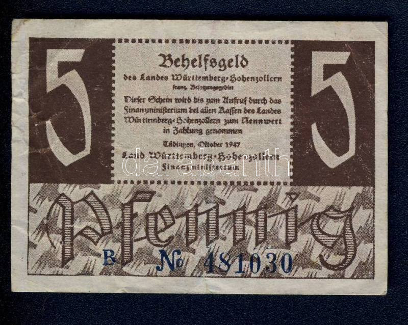 Beschreibung: Németország/Szövetséges megszállás/Francia zóna/Württemberg-Hohenzollern Finanzministerium 1947. 5Pf T:III