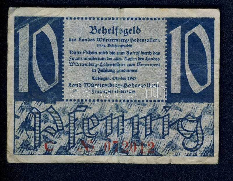 Beschreibung: Németország/Szövetséges megszállás/Francia zóna/Württemberg-Hohenzollern Finanzministerium 1947. 10Pf T:III