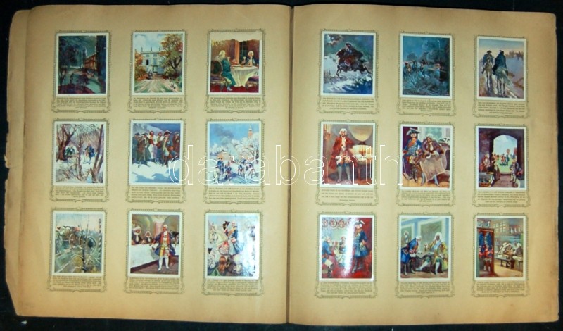 cca 1910 Geschichten von alten Fritz gyűjtőképes album képekkel 240 darab kép benne van a 250-ből (borító sérült) / Stories of Old Fritz book with collectable pictures. Only 10 mising from the 250 (cover damaged)