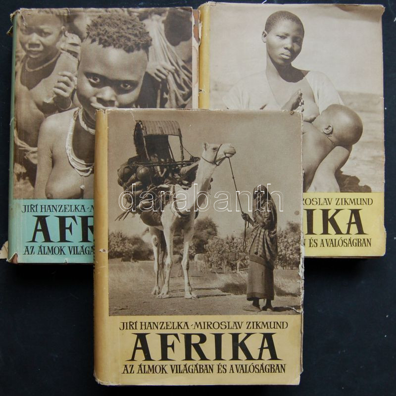 1955 Jirí Hanzelka: Afrika, az álmok világában és valóságban regény mind a 3 teljes kötete a Művelt Nép Könyvkiadótól, Budapest, néhol szakadt papírborítóval de jó állapotban