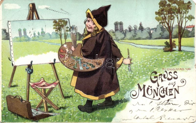 München girl painting landscape (EK) https://www.darabanth.com/de/119-Fernauktion/119.0/Ansichtskarten/~40107/Munchen-girl-painting-landscape-EK~II317302