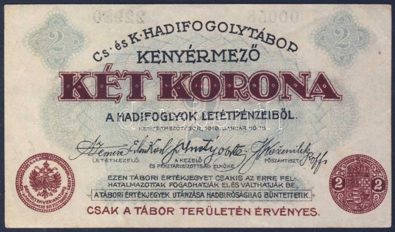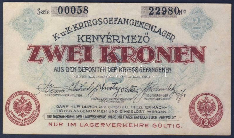 Kenyérmező/hadifogolytábor 1916. 2K T:II+ https://www.darabanth.com/de/119-Fernauktion/119.0/Numismatik/~40183/Kenyermezohadifogolytabor-1916-2K-TIIplus~II321501