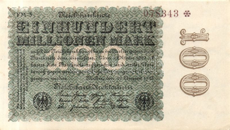 Német Birodalom / Weimari Köztársaság 1923. 100.000.000M (2x) cégnyoma... https://www.darabanth.com/de/119-Fernauktion/119.0/Numismatik/~40184/Nemet-Birodalom-Weimari-Koztarsasag-1923-100000000M-2x-cegnyomat-Sterne-mit-einer-S-dar~II321865