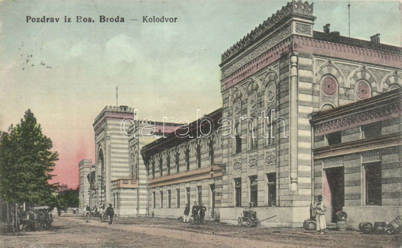 Bosanski Brod railway station https://www.darabanth.com/de/12-Gross-Auktion/12.1/Ansichtskarten/Bosnien-Herzegowina~3516/Bosanski-Brod-railway-station~II414083