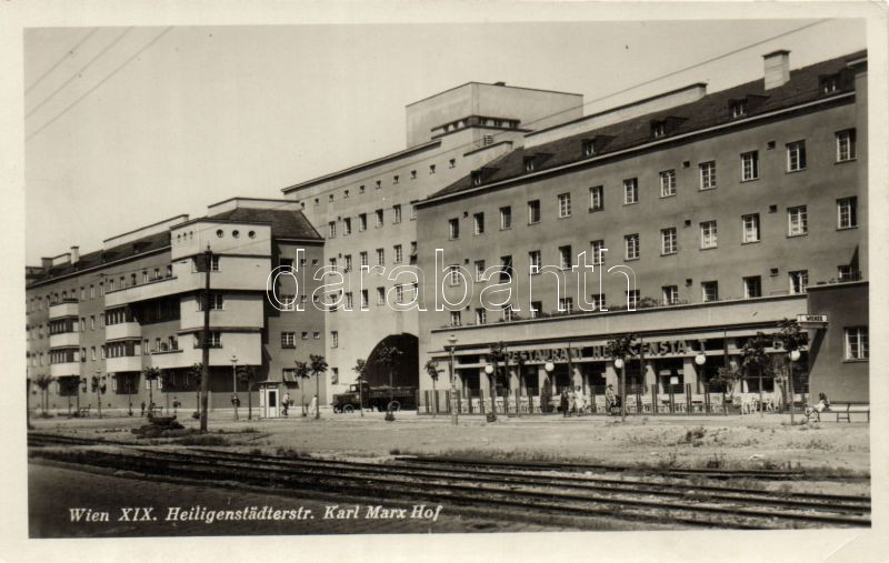Vienna XIX. Heiligenstädter street, Karl Marx house, restaurant https://www.darabanth.com/de/12-Gross-Auktion/12.1/Ansichtskarten/Osterreich~3512/Vienna-XIX-Heiligenstadter-street-Karl-Marx-house-restaurant~II405559