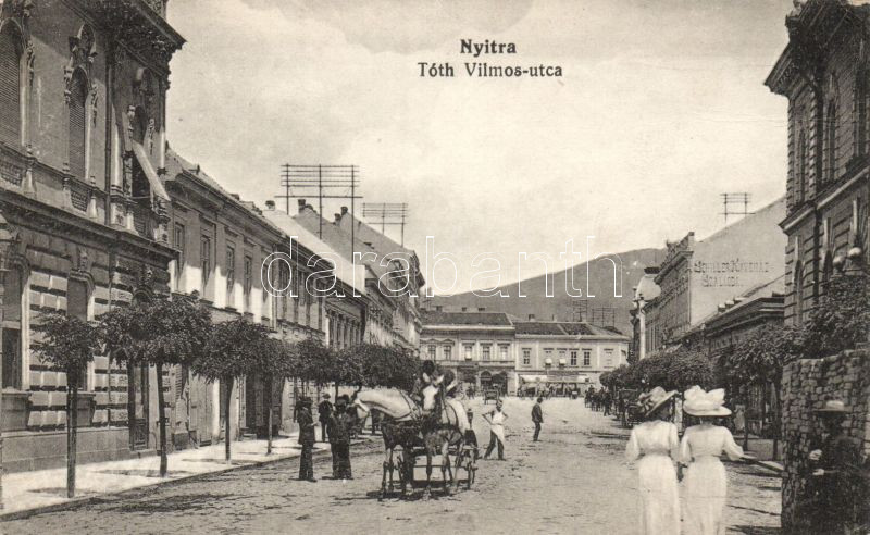 Nyitra Tóth Vilmos street with Hotel Schiller https://www.darabanth.com/de/12-Gross-Auktion/12.1/Ansichtskarten/Slowakei~3501/Nyitra-Toth-Vilmos-street-with-Hotel-Schiller~II413609