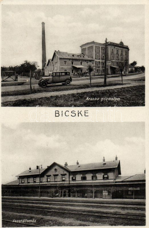 Bicske az Aranka gőzmalommal és vasútállomással https://www.darabanth.com/de/12-Gross-Auktion/12.1/Ansichtskarten/Ungarn~3499/Bicske-az-Aranka-gozmalommal-es-vasutallomassal~II413380