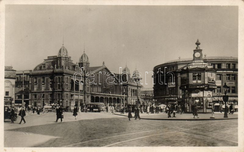 Budapest VI. Nyugati pályaudvar villamossal https://www.darabanth.com/de/12-Gross-Auktion/12.1/Ansichtskarten/Ungarn~3499/Budapest-VI-Nyugati-palyaudvar-villamossal~II416812