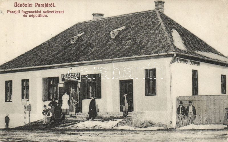 Parajd fogyasztási szövetkezet és népotthon https://www.darabanth.com/de/12-Gross-Auktion/12.1/Ansichtskarten/Ungarn~3499/Parajd-fogyasztasi-szovetkezet-es-nepotthon~II408474