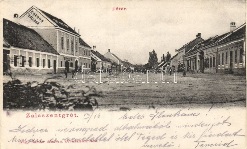 Zalaszentgrót főtér a Korona Szállodával https://www.darabanth.com/de/12-Gross-Auktion/12.1/Ansichtskarten/Ungarn~3499/Zalaszentgrot-foter-a-Korona-Szallodaval~II408655