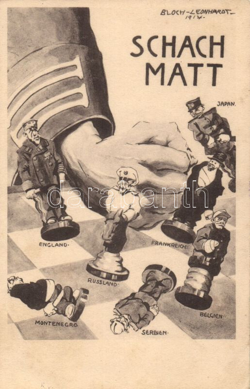 Military WWI political propaganda, Checkmate s: Bloch-Leonhardt https://www.darabanth.com/de/12-Gross-Auktion/12.1/Thematik-und-Kunstlerkarten/Propaganda~3620/Military-WWI-political-propaganda-Checkmate-s-Bloch-Leonhardt~II416113