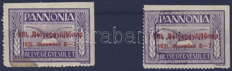Beschreibung: 1931 Pannónia bélyegegyesület emlékbélyege 2 db