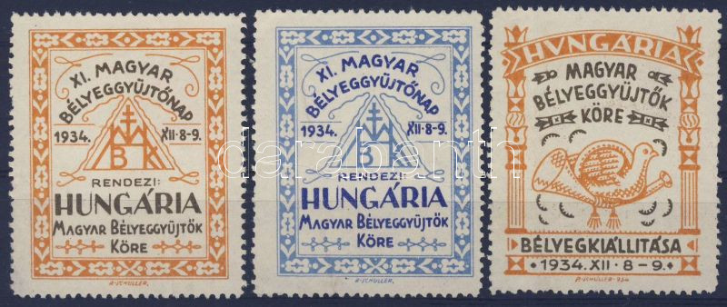 Beschreibung: 1934 XI. Magyar Bélyeggyűjtőnap 3 db reklámbélyeg