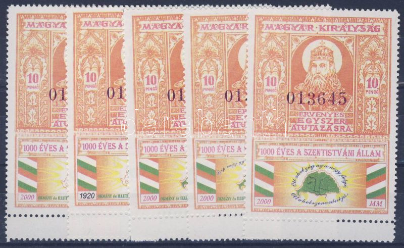 2000 Okmánybélyeg szakosztály 5 db-os fogazott sor https://www.darabanth.com/de/120-Fernauktion/120.0/Andere-Sammelgebiete/~365/2000-Okmanybelyeg-szakosztaly-5-db-os-fogazott-sor~II324324