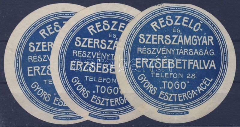 Erzsébetfalva "TOGO" reklámpecsét 3 db https://www.darabanth.com/de/120-Fernauktion/120.0/Andere-Sammelgebiete/~365/Erzsebetfalva-TOGO-reklampecset-3-db~II324255