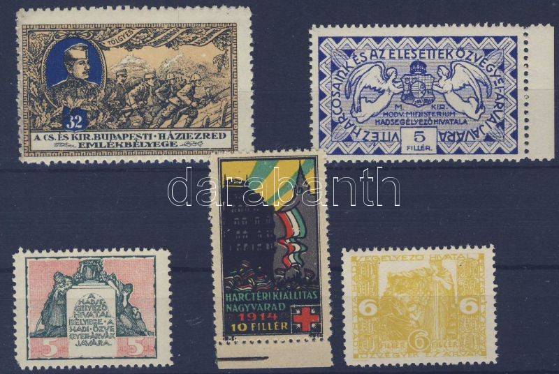 Beschreibung: I. Világháború: Hadisegély levélzárók, 5 db