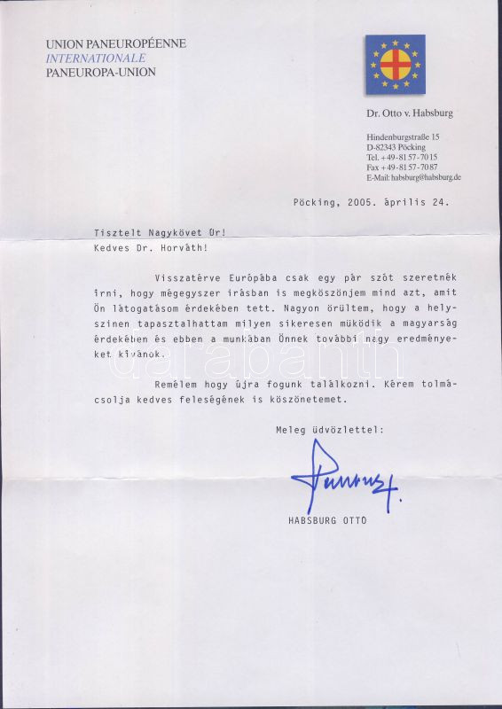 Habsburg Ottó aláírása üdvözlő levélen / Signature of Otto von Habsbur... https://www.darabanth.com/de/120-Fernauktion/120.0/Andere-Sammelgebiete/~374/Habsburg-Otto-alairasa-udvozlo-levelen-Signature-of-Otto-von-Habsburg~II325533