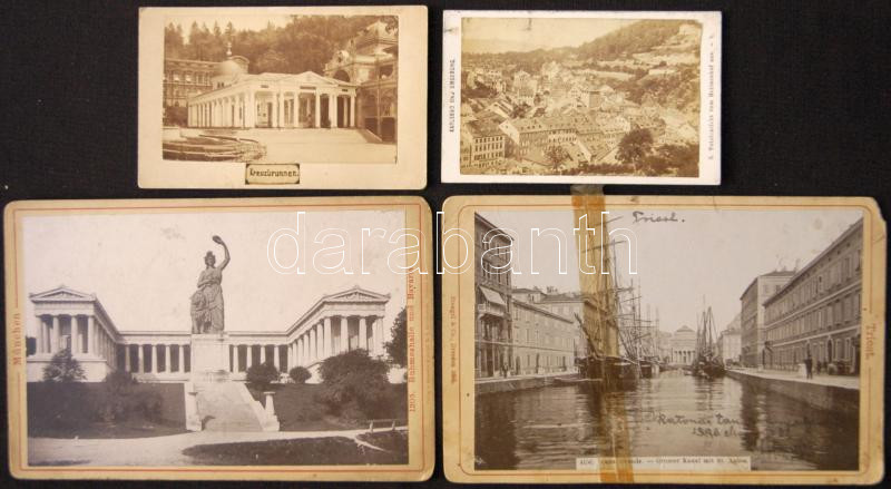 Beschreibung: cca 1880-1900 Triest, Kreuzbrunnen, Karlsbad, München 4 db keményhátú fotó / 4 vintage photos