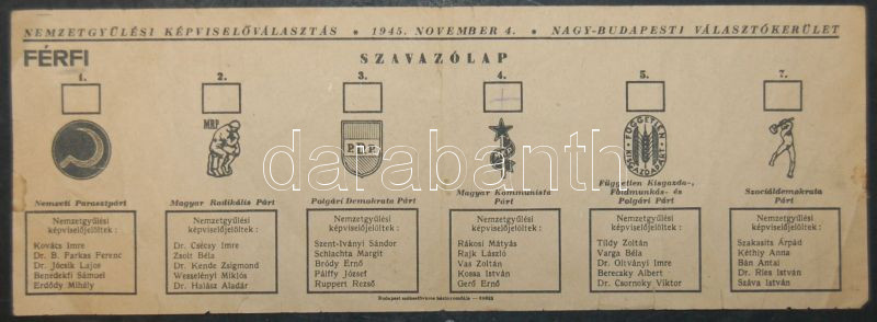 Az 1945 novemberi választás szavazólapja https://www.darabanth.com/de/120-Fernauktion/120.0/Andere-Sammelgebiete/~385/Az-1945-novemberi-valasztas-szavazolapja~II321897