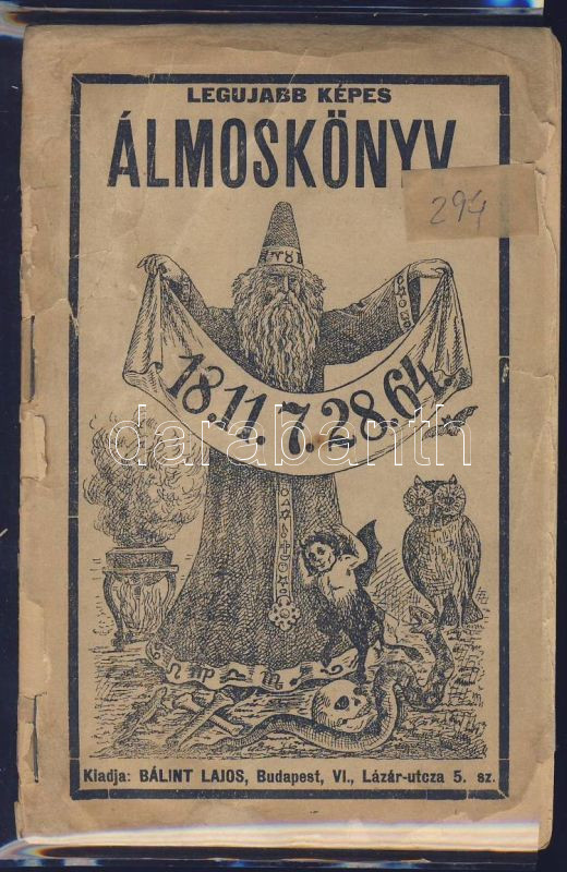 Beschreibung: Legújabb képes álmoskönyv a háború előtti időszakból, 64 oldallal, Bálint Lajos kiadásában, külső borítón kisebb szakadásokkal