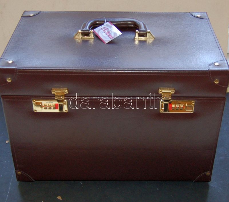 Beschreibung: N Tina márkájú, új, igényes, hordozható számzáras ékszertartó 6 fiókkal és rekeszekkel. Bör borítás, bársony belsőrész 43x30x30 cm