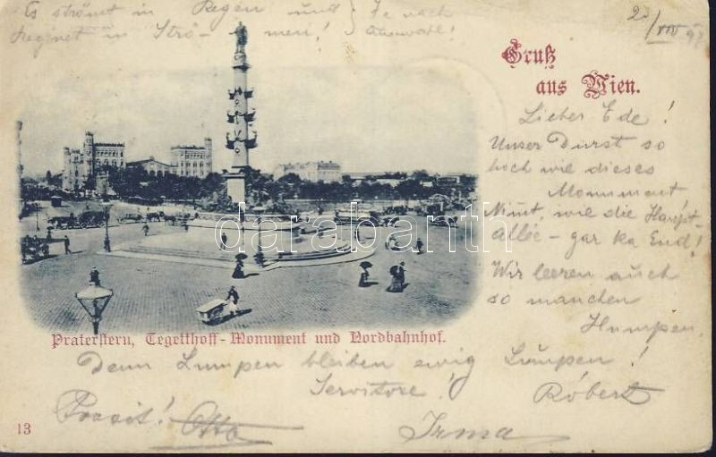 1897 Vienna Praterstern with Tegetthoff monument and Northern Railway ... https://www.darabanth.com/de/120-Fernauktion/120.0/Ansichtskarten/~270/1897-Vienna-Praterstern-with-Tegetthoff-monument-and-Northern-Railway-Station-EK~II324350