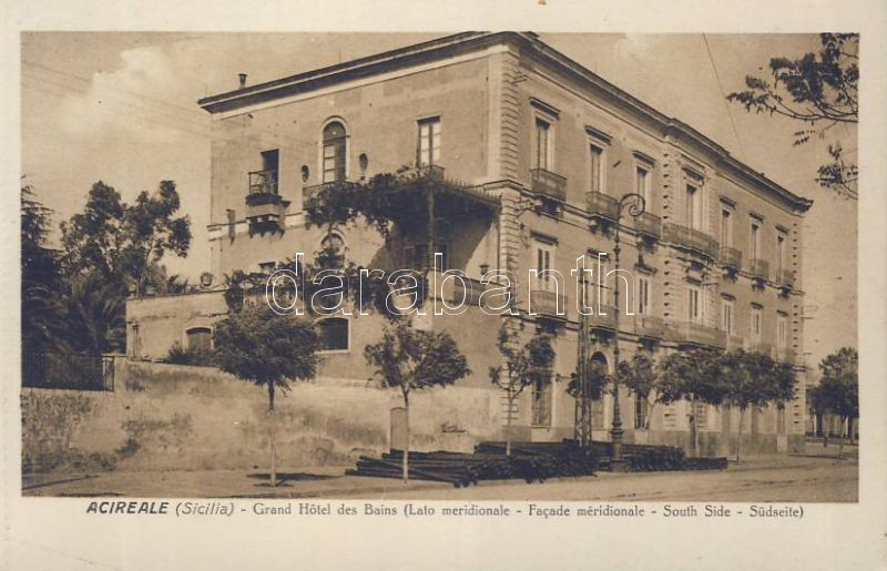 Acireale Grand Hotel de Bains south side https://www.darabanth.com/de/120-Fernauktion/120.0/Ansichtskarten/~291/Acireale-Grand-Hotel-de-Bains-south-side~II324103